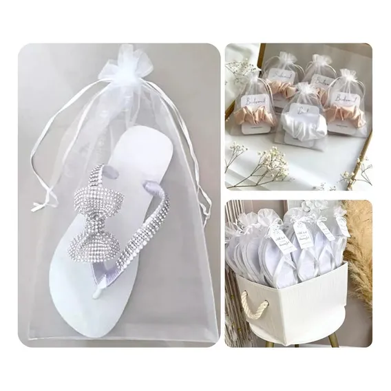 10 Saquinho Saco Organza 24x40 Chinelos Lembrança Casamento Saquinho Branco