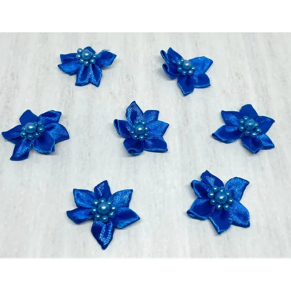 100 Unidades Flor Rococó De Cetim Com Pérolas 2,5cm Cor Azul Royal