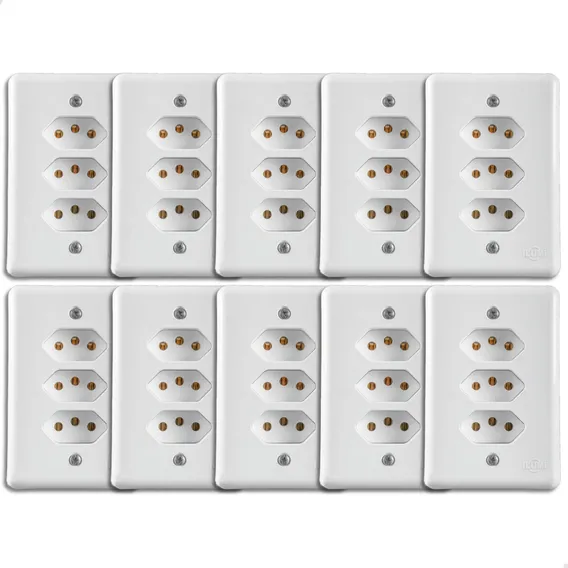 Chega em 5 dias 10x Tomada Tripla 2p+t 10a Monobloco Embutir Branco Entrega até Sábado, 25 de outubro de 2025 para TODO o Brasil