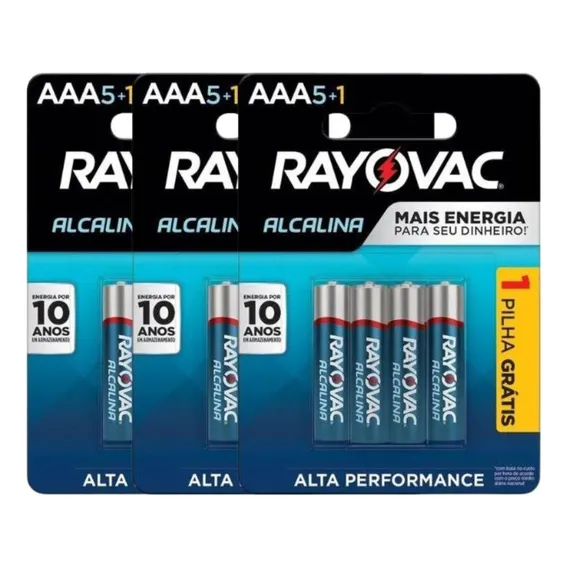 18 Pilhas Aaa Alcalina Rayovac 3 Cart C/ 6 Unid