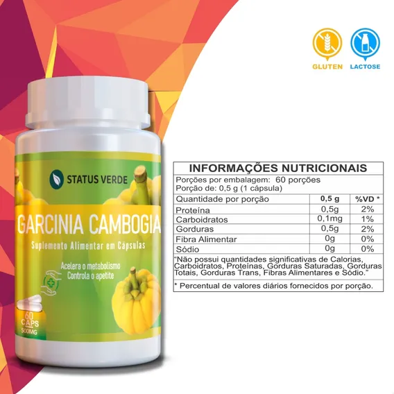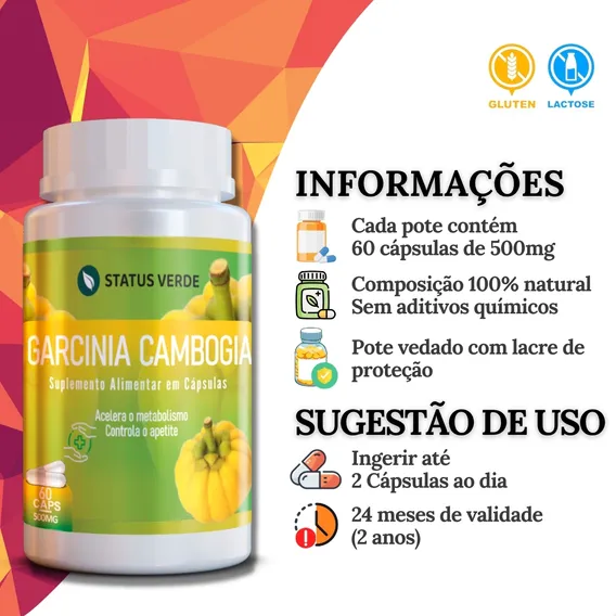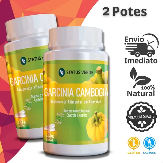 2 Potes Garcinia Cambogia 100% Natural Kit 240 Cáps - Status Verde