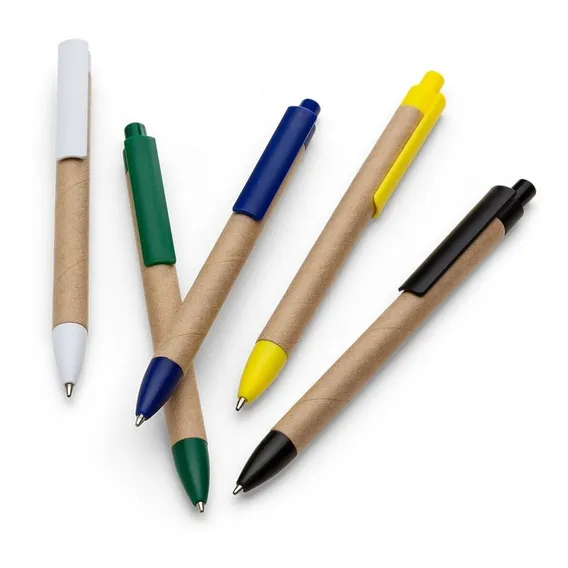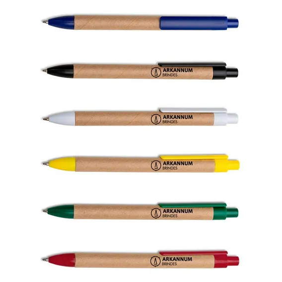 30 Caneta Eco Clip Plástico Vermelho Personalizado 1x Tinta Ciano