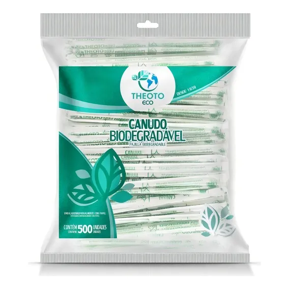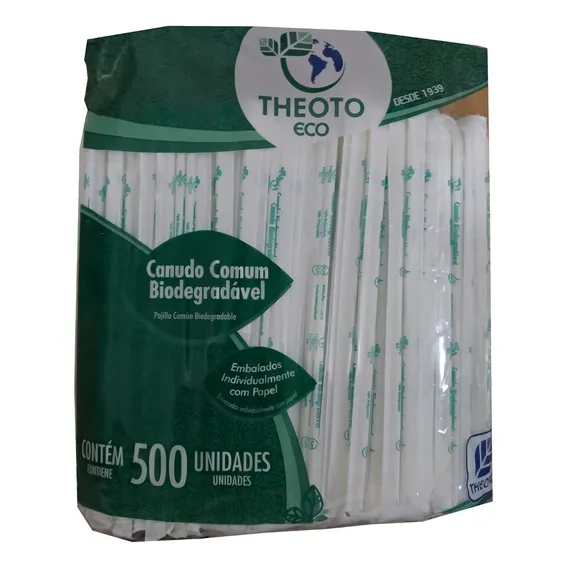 500 Canudo Biodegradável Embalados Individual Theoto C/