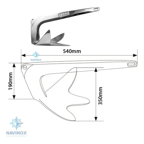 - Peso de 7,5 kg, adequado para barcos de 23 a 28 pés