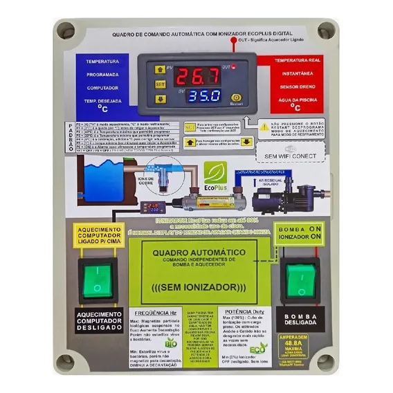 - Monitoramento preciso da temperatura da água, com indicador digital.