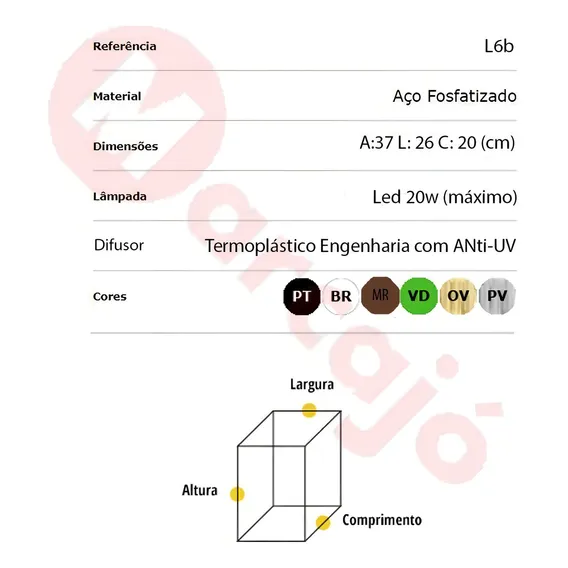 - Tipo de difusor: Termoplástico de engenharia com anti-UV