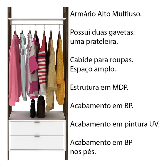 Armário Alto Closet Az1011 Mdp Branco/nogal - Gran Belo
