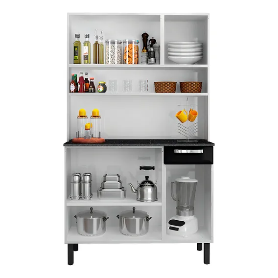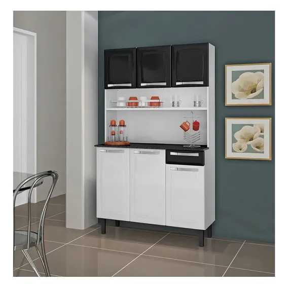 Armário De Cozinha Compacta Itatiaia Rose 6 Portas 1 Gaveta Cor Branco com Preto