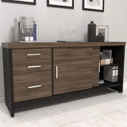 Chega em 5 dias Armário Para Escritório 2 Portas 3 Gavetas Charuto/preto Entrega até Sábado, 25 de outubro de 2025 para TODO o Brasil