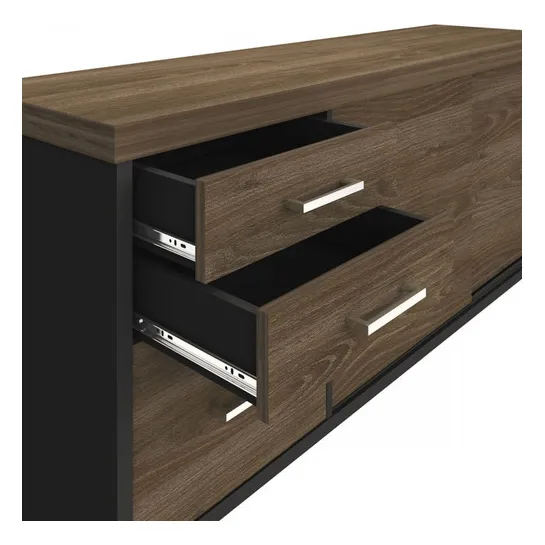 Armário Para Escritório 2 Portas 3 Gavetas Charuto/preto Foto 1