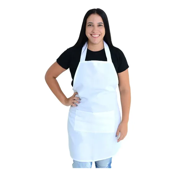Avental Liso Com Bolso Unissex Avental Cozinha Cor Branco
