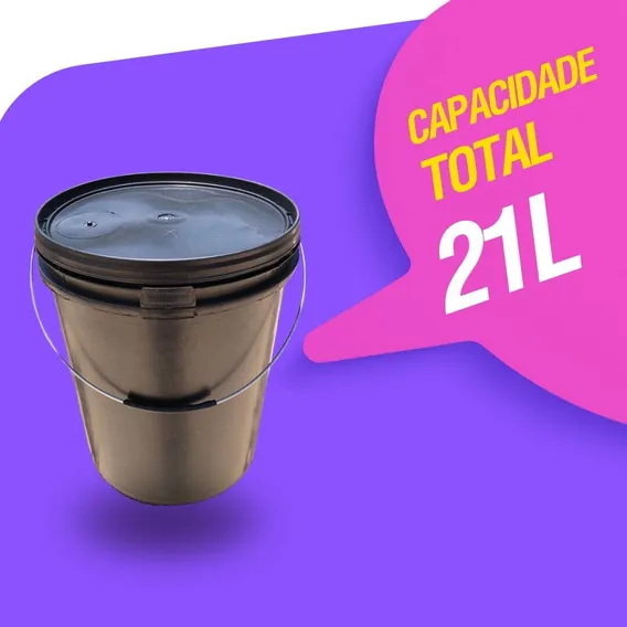Balde S Graduado De 20 Litros - Kit 5 Pçs Cor Preto
