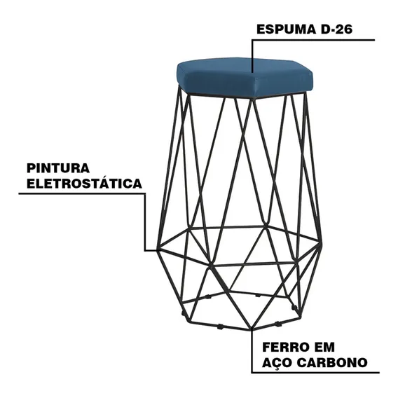 Banqueta Decorativa Rubel Preta Suede Azul Marinho Gran Belo