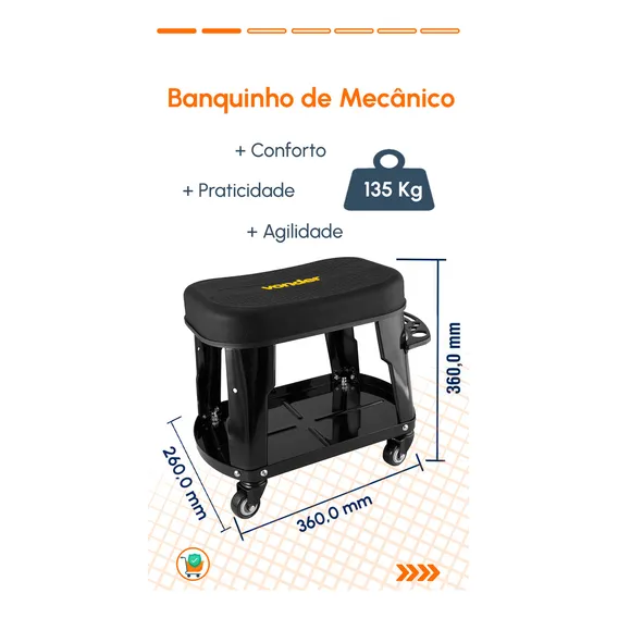 Produto Original Banqueta Para Mecânico Vonder Banquinho Com Porta-ferramenta Produto Original