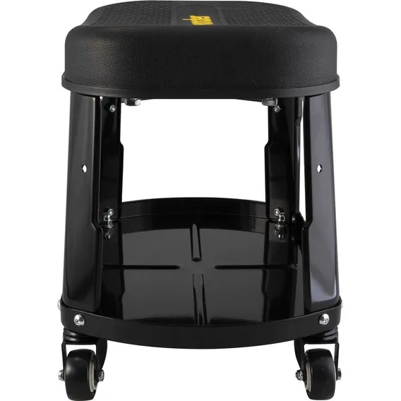 Banqueta para mecânico com porta-ferramentas, rodízios giratórios e pintura eletrostática a pó, ideal para oficinas e linhas de montagem. Pesa 6,40 kg, suporta até 135 kgf e tem 360mm de altura. Recursos: - Estrutura em aço carbono - Assento em plástico emborrachado - Chaves fixas inclusas - Chave hexagonal para montagem Características: - Porta-ferramentas - Rodízios giratórios independentes - Pintura eletrostática a pó Especificações: - Cor: Preta - Altura: 360 mm - Capacidade: 135 kgf - Medida do assento: 360 mm x 260 mm - Peso: 6,40 kg