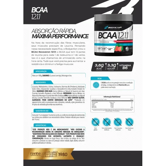 - Formulação especial 12:1:1 de Leucina, Isoleucina e Valina