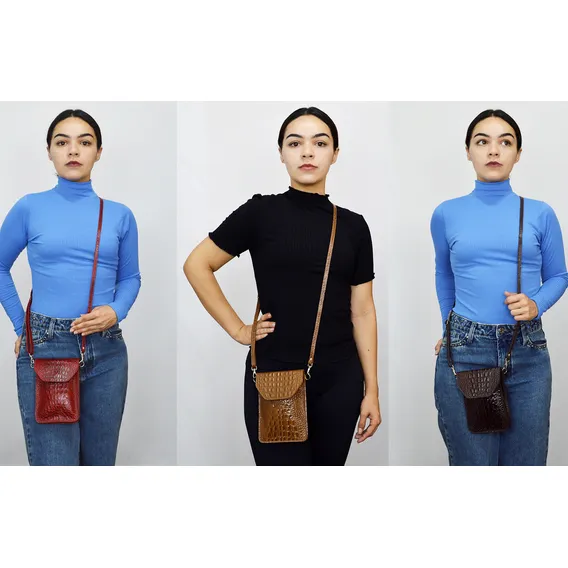 Bolsa Feminina Pequena Transversal Azul Couro Legitimo Porta Celular Madamix