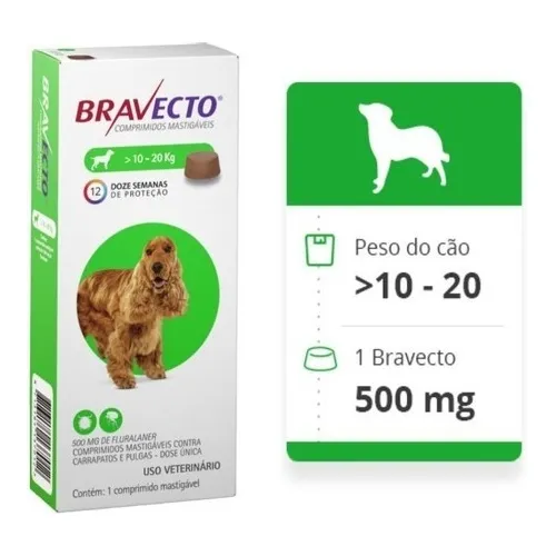 Bravecto Antipulgas Carrapatos 500 CĂŁes 10a20kg + Necessaire