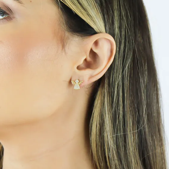 Brinco Anjo Delicado Pedras Zircônias Semi Joia Banhado Ouro Foto  mini 1 Brinco Anjo Delicado Pedras Zircônias Semi Joia Banhado Ouro Foto mini  2 Brinco Anjo Delicado Pedras Zircônias Semi Joia Banhado Ouro Foto mini  3 Brinco Anjo Delicado Pedras Zircônias Semi Joia Banhado Ouro Foto mini 4