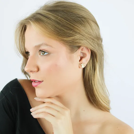 Brinco Anjo Delicado Pedras Zircônias Semi Joia Banhado Ouro