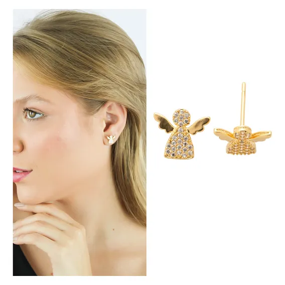 Chega em 5 dias Brinco Anjo Delicado Pedras Zircônias Semi Joia Banhado Ouro Chega em 5 dias!