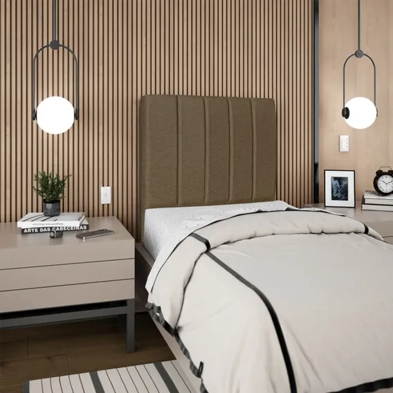 Cabeceira Solteiro 90cm Arlla Linho Marrom Rm