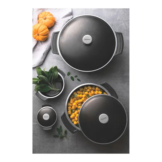 - Dimensões: Varia de acordo com o modelo (exemplo: 28 cm x 30 cm x 4 cm para uma panela média)