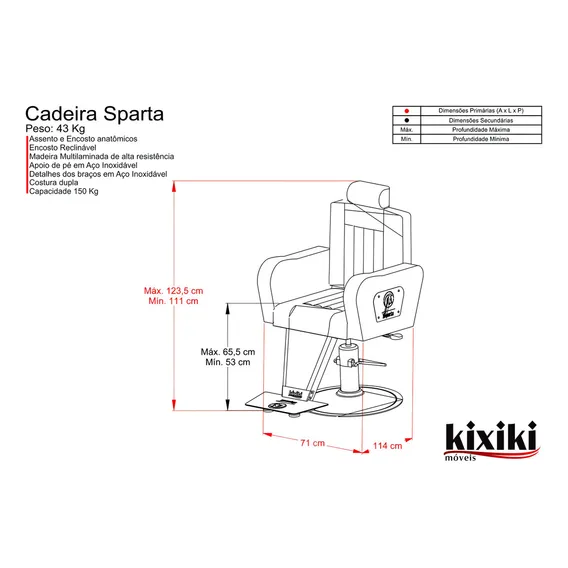 Chega em 5 dias Cadeira Para Barbeiro Reclinável Sparta Kixiki Chega em 5 dias!