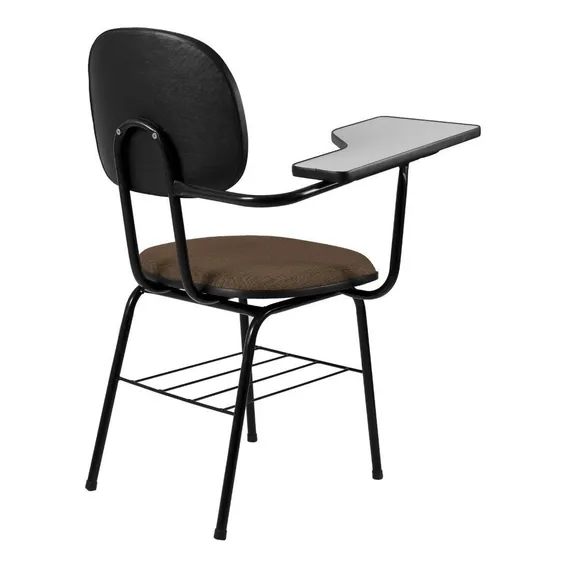 Cadeira Universitária Secretária Palito Escola Couro Cor Tecido Marrom/Preto