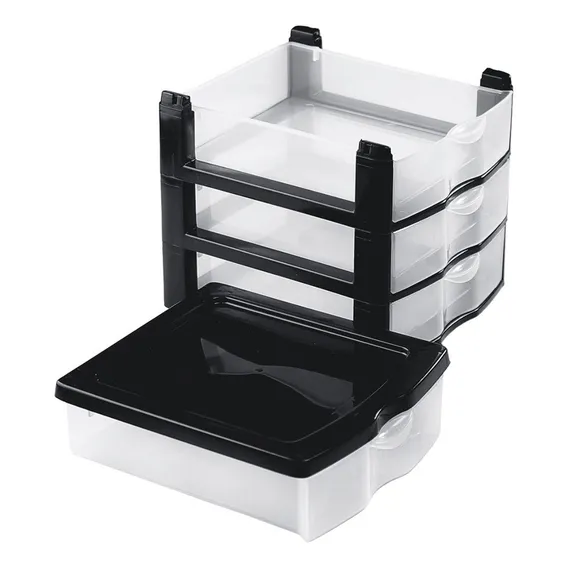 Caixa Gaveteiro Plástico Organizador Multiuso C/4 Gavetas Cor Preto