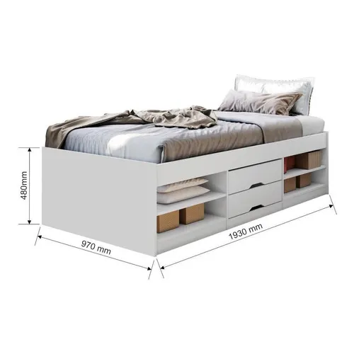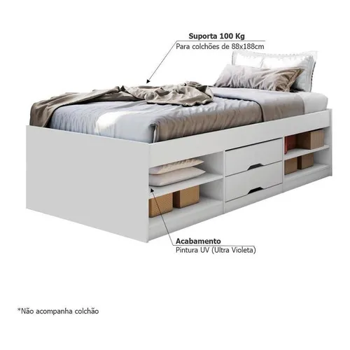 Chega em 5 dias Cama Solteiro Multifuncional Kiara Com Gavetas Branco Entrega até Sábado, 25 de outubro de 2025 para TODO o Brasil
