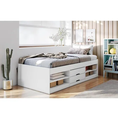 Cama Solteiro Multifuncional Kiara Com Gavetas Branco