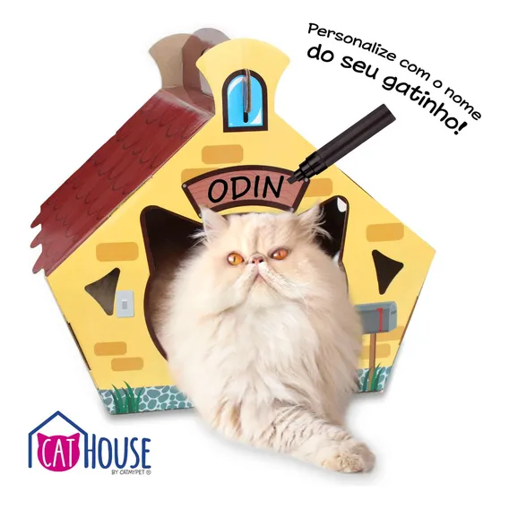 Casinha Para Gatos Cat House Brinquedo Para Gatinho Catmypet Cor Amarelo