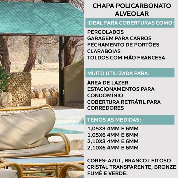 Chapa Policarbonato Alveolar Cristal 2,10x6,00 6mm