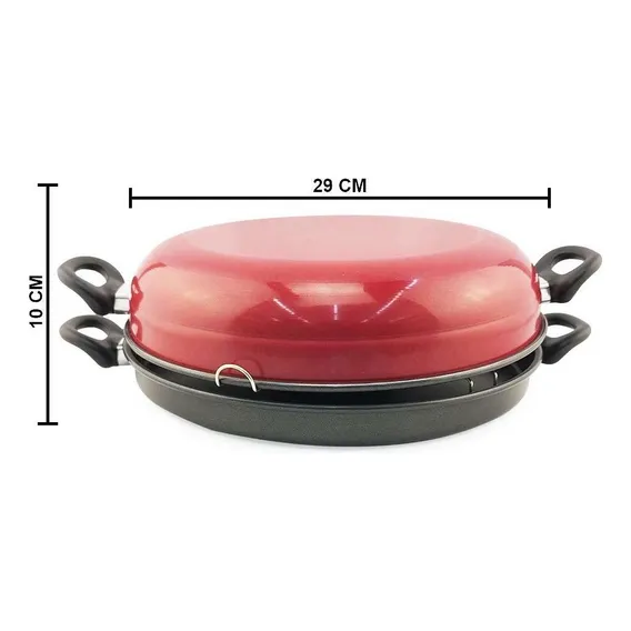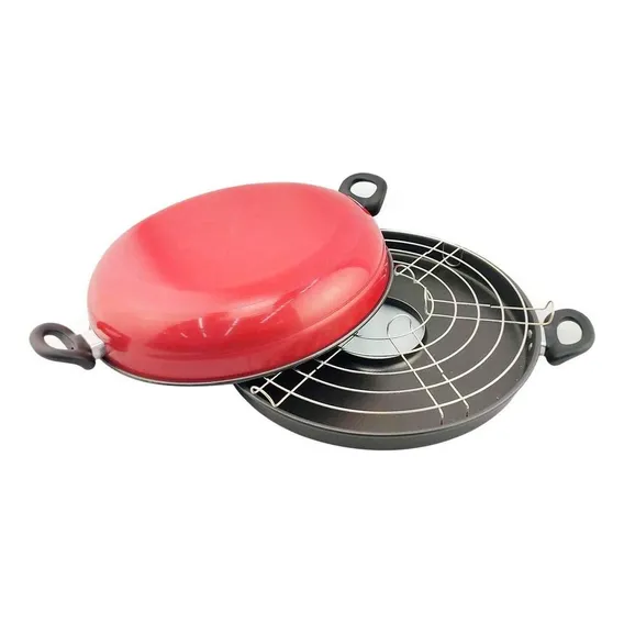 Churrasqueira De Fogão Antiaderente Panela Grelha Sem Fumaça Cor Vermelho