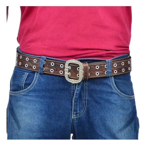Cinto Country Muladeiro De Couro Legitimo Fivela Cor Café Tamanho 90CM