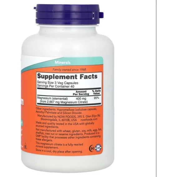 Citrato de Magnesio 120 Capsulas Now Foods Magnesium Citrate