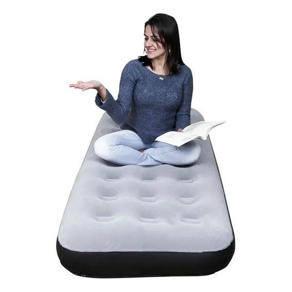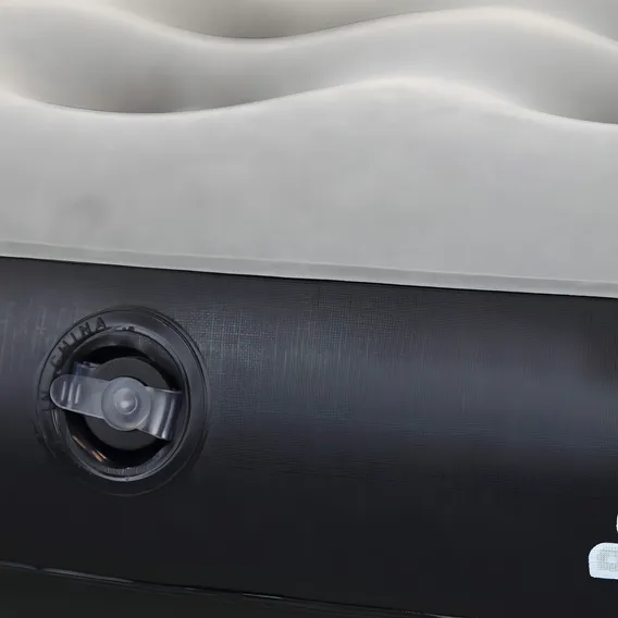 Colchão inflável ideal para viagens e acampamentos, oferecendo conforto e praticidade com superfície aveludada, rápido enchimento e esvaziamento, e suporte de até 100 kg. Recursos: - Suporte de até 100 kg - Material em PVC com 70% de reciclagem - Fácil de limpar - Kit de reparo para emergências Características: - Superfície aveludada - Válvulas de rápido enchimento e esvaziamento - Leve e compacto Especificações: - Tamanho: Solteiro - Material: PVC (70% reciclado) - Peso: Leve - Suporte: Até 100 kg
