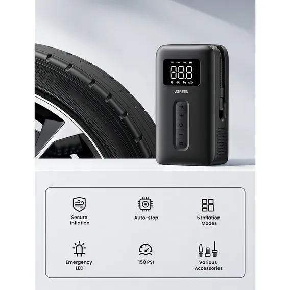 Compressor Ar Portátil Ugreen Tire Inflador Pneus Preto