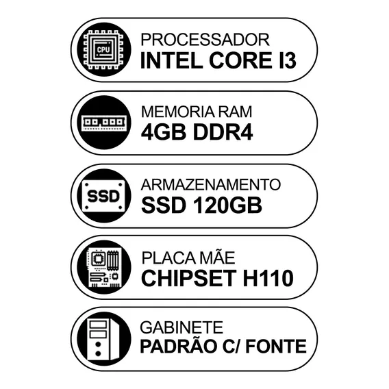 Computador Desktop Intel I3-6100 3.70 Ghz 4gb Ddr4 Ssd 120gb