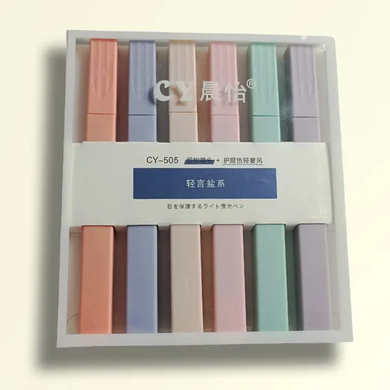 Conjunto Caneta Marca Texto Quarado 6 Cores Tons Pastéis