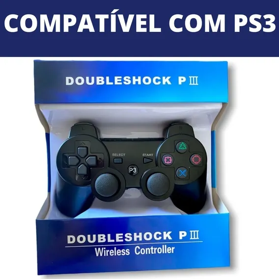 Controle Joystick Ps3 Play3 Wireless Sem Fio C Cabo Usb Cor Preto