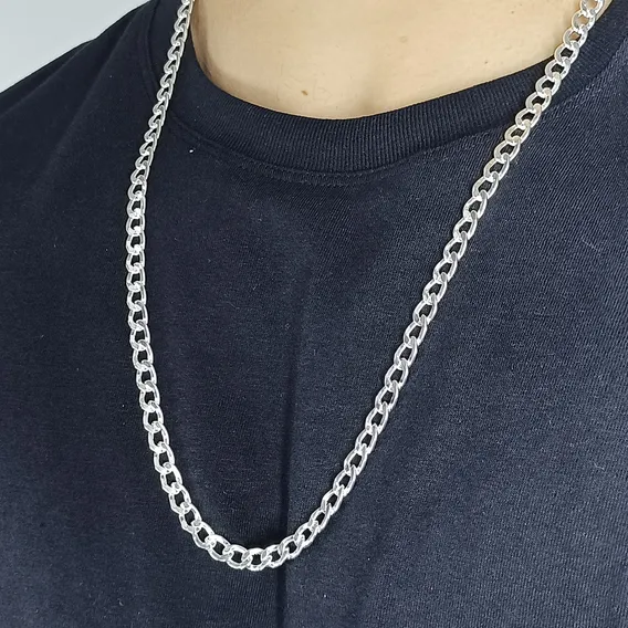 Corrente Prata 925 Cordão Masculino 60cm 7mm Grossa Grumet