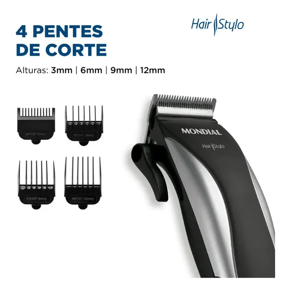 Cortador De Cabelos Hair Stylo Mondial Preto/prata Cr-02 Preto 110v