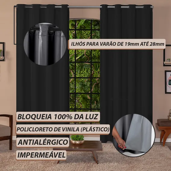 Cortina Blackout Blecaute 2 Metros 2,80x2,20 Corta Luz Cor Cortina Preta