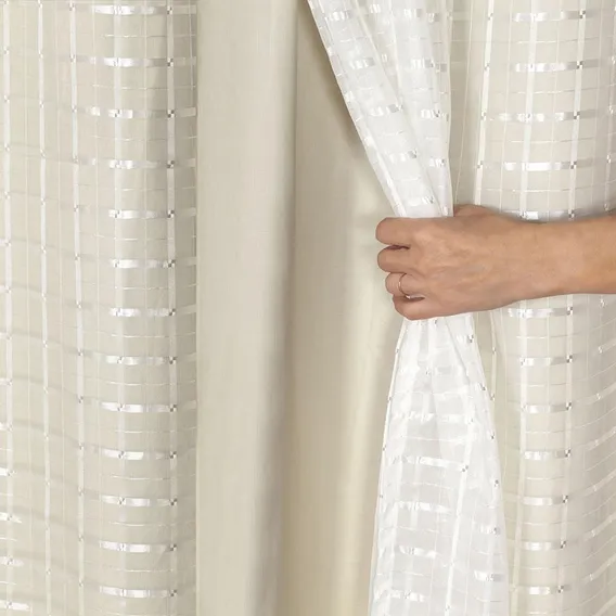 Cortina Blackout Corta Luz Pvc Voil Xadrez 2,00 X 1,40 Bege