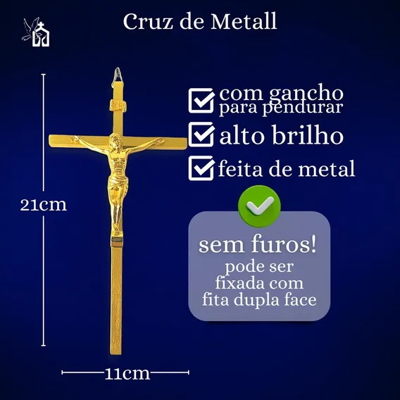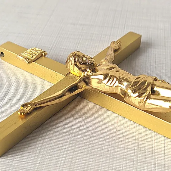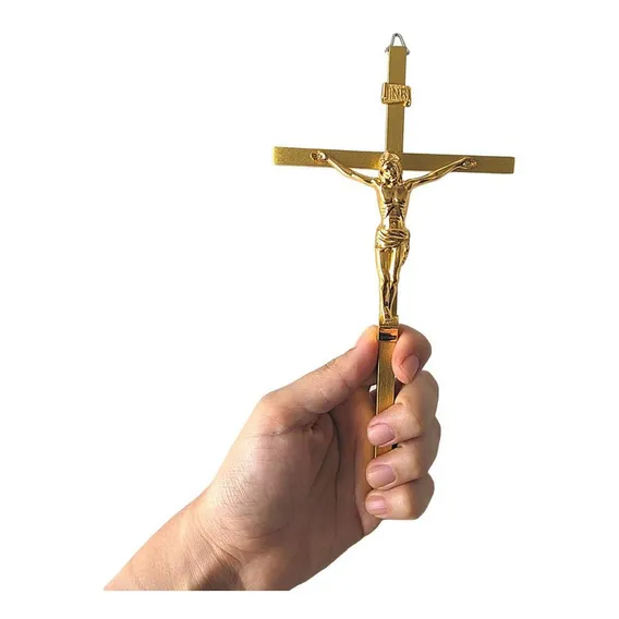 Crucifixo Parede Metal Cruz Pequena Metal Dourada 20cm Cor Dourado