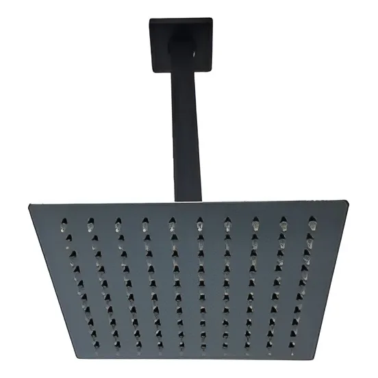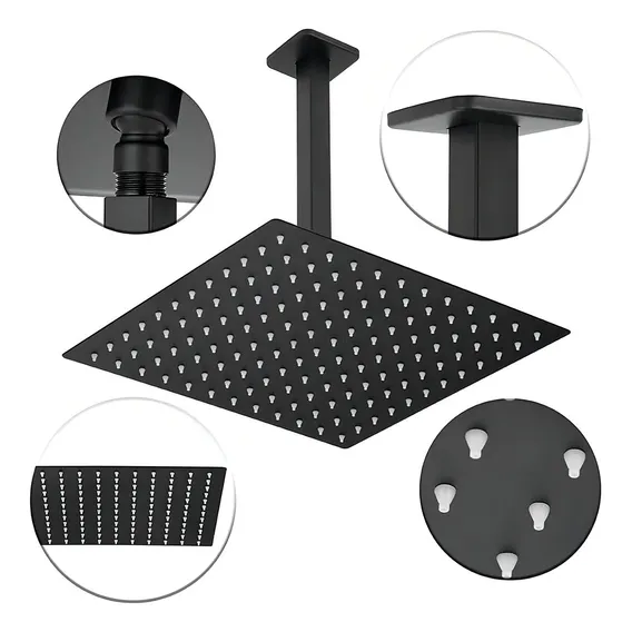 Ducha Quadrada Slim Chuveiro De Teto 20cm Preta Inox Braço