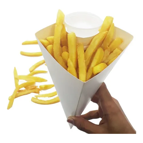 Embalagem Cone Para Batata Frita Tamanho M 100 Unds Cor Branco