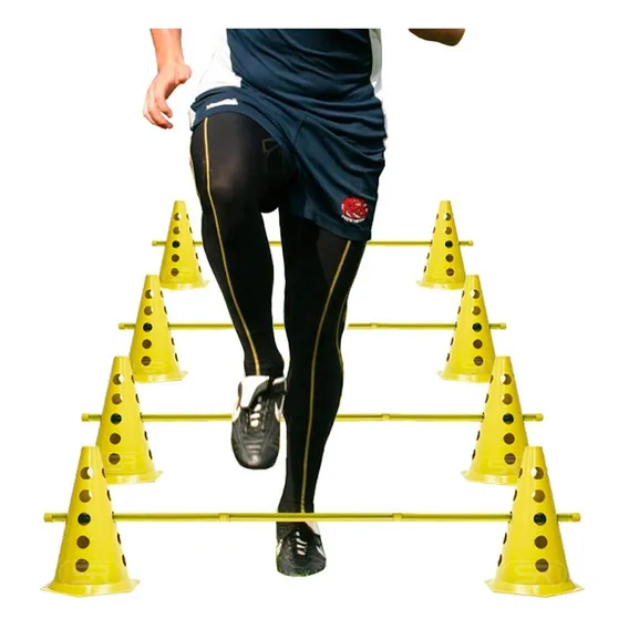 Escada Funcional + 10 Cones Furados C/ 5 Barreiras + 10 Cones Lisos De Agilidade + 10 Pratos